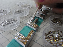 クリスタライズ(スワロフスキー社製ラインストーン)を全てのデコレーションに使用し、一般的に使われている瞬間接着剤を使用せず、素材を曇らせることなく強力に接着する接着剤を使用しています。